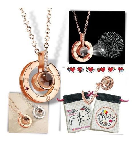 Através de nano tecnologia a parte interna do pingente traz uma mensagem linda! O colar carrega a frase “Eu te amo” em 100 idiomas diferentes de diversas partes do mundo.